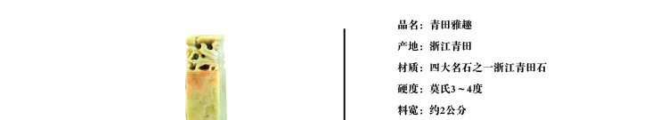 浙江青田 豆綠朱紅凍底龍鳳鈕 名章